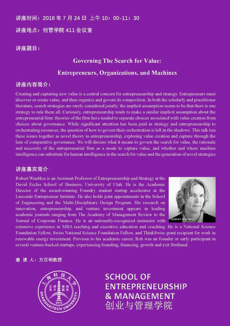 Creating and capturing new value is a central concern for entrepreneurship and strategy. Entrepreneurs must discover or create value, and then organize and govern its composition. In both the scholarly and practitioner literature, search strategies are rarely considered jointly; the implicit assumption seems to be that there is one strategy to rule them all. Curiously, entrepreneurship tends to make a similar implicit assumption about the entrepreneurial firm: theories of the firm have tended to separate choices associated with value creation from choices about governance. While significant attention has been paid in strategy and entrepreneurship to orchestrating resources, the question of how to govern their orchestration is left in the shadows. This talk ties these issues together as novel theory in entrepreneurship, exploring value creation and capture through the lens of comparative governance. We will discuss what it means to govern the search for value, the rationale and necessity of the entrepreneurial firm as a mode to capture value, and whether and where machine intelligence can substitute for human intelligence in the search for value and the generation of novel strategies.