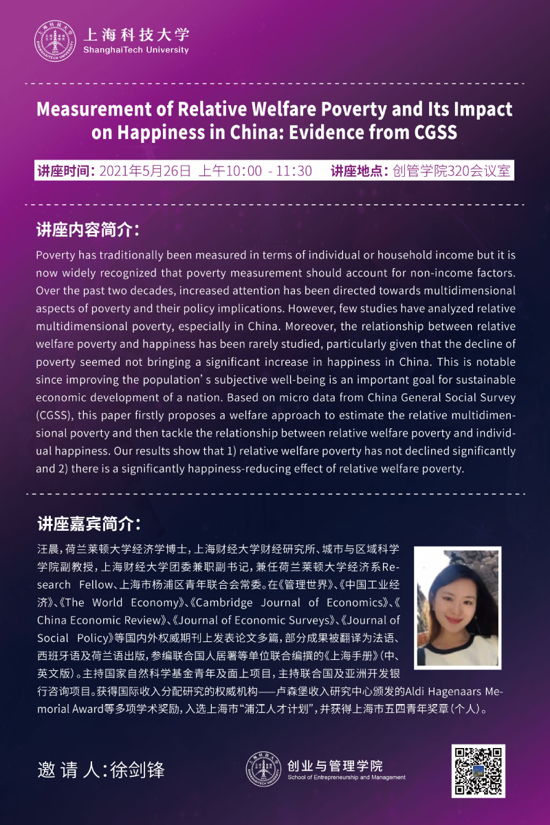 Speaker:Prof. Chen WANG(Shanghai University of Finance & Economics)