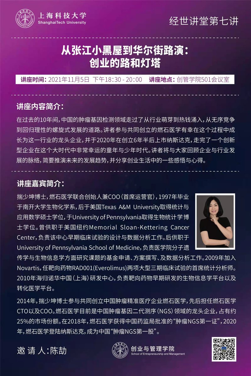 在过去的10年间,中国的肿瘤基因检测领域走过了从行业萌芽到热钱涌入,从无序竞争到回归理性的螺旋式发展的道路。讲者参与共同创立的燃石医学有幸在这个过程中成长为这一行业的龙头企业,并于2020年在创立6年半后上市纳斯达克,走完了一个创新型企业在这个大时代中非常幸运的童年与少年时代。讲者将与大家回顾企业与行业发展的脉络,简要推演未来的发展趋势,并分享创业生活中的一些感悟与心得。
